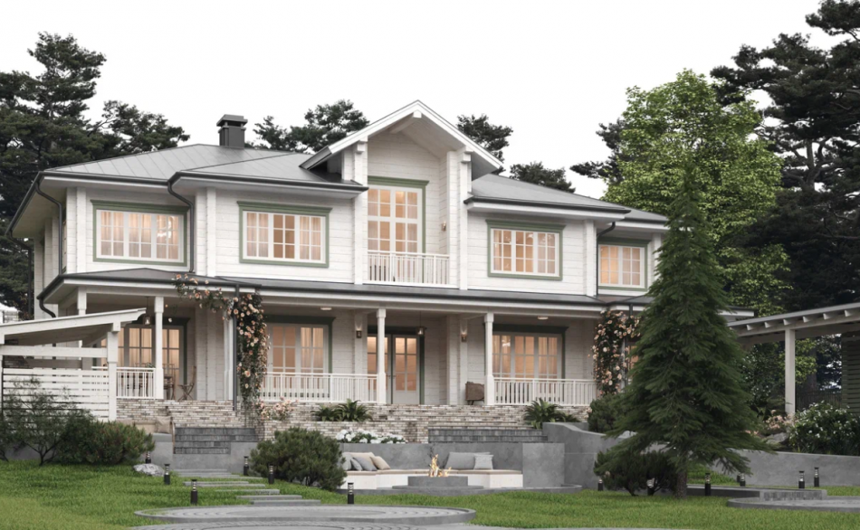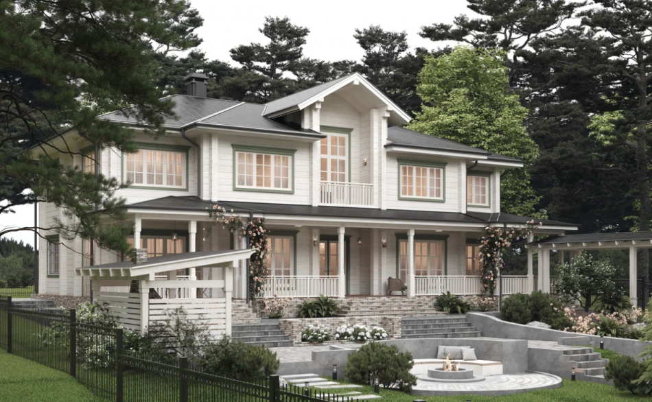При заказе архитектурного проекта клиенты озвучили два основных пожелания: хотим дом в американском стиле для большой семьи, просторный, с террасой с видом на сад.