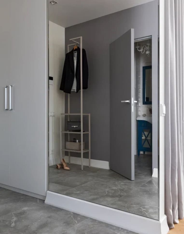Начиная работу над дизайном интерьера, мы объединили санузел и ванную комнату в одно помещение, а также убрали перегородку в прихожей. Включили в интерьер встроенные шкафы. Это позволило оптимизировать каждый квадратный сантиметр пространства.