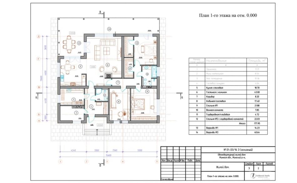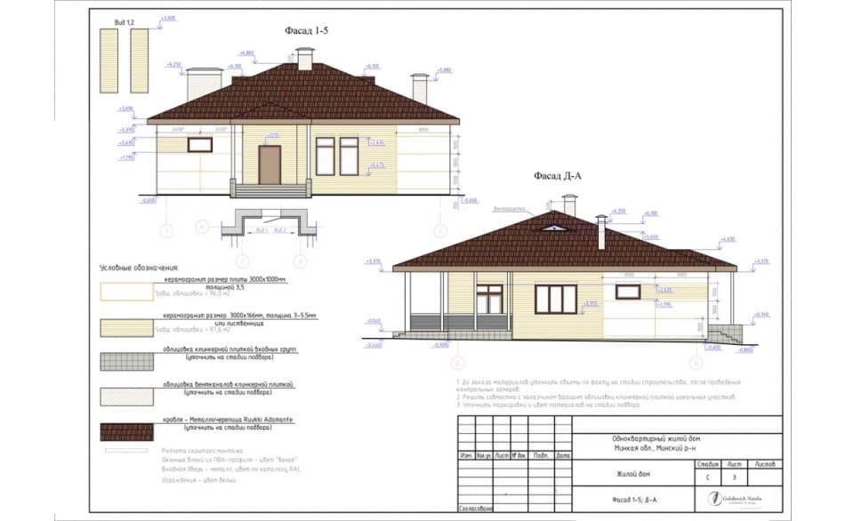 Ведомость отделочных материалов (площади материалов, типы материалов).