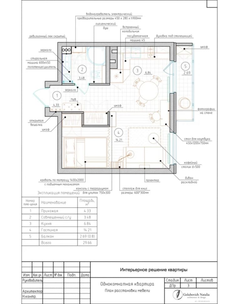 Проект однокомнатной квартиры в Санкт-Петербурге