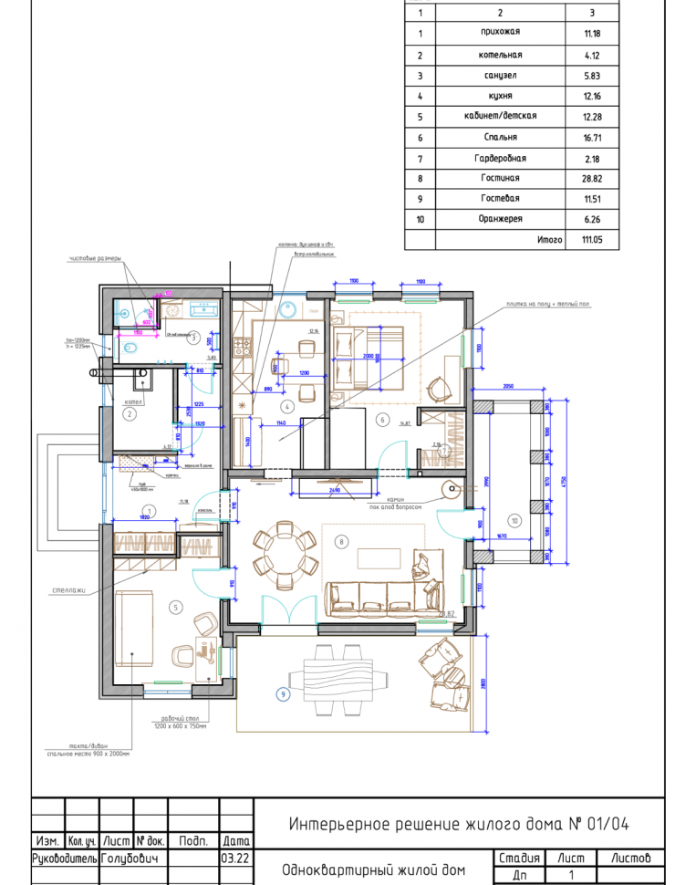 Ведомость отделочных материалов (площади материалов, типы материалов).