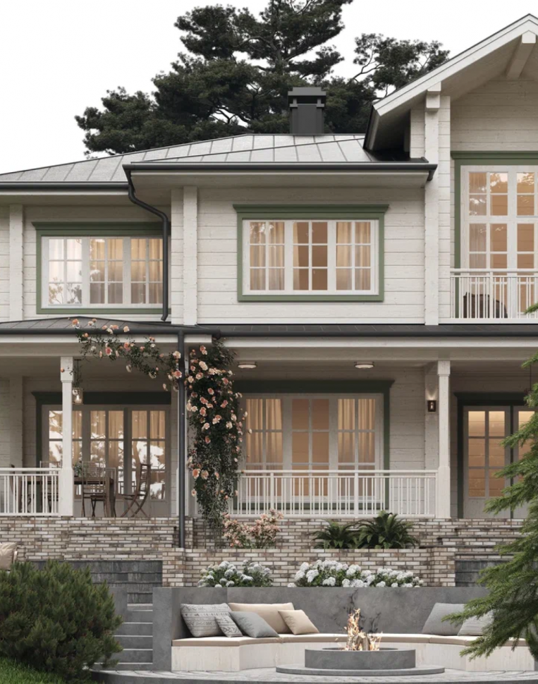 При заказе архитектурного проекта клиенты озвучили два основных пожелания: хотим дом в американском стиле для большой семьи, просторный, с террасой с видом на сад.