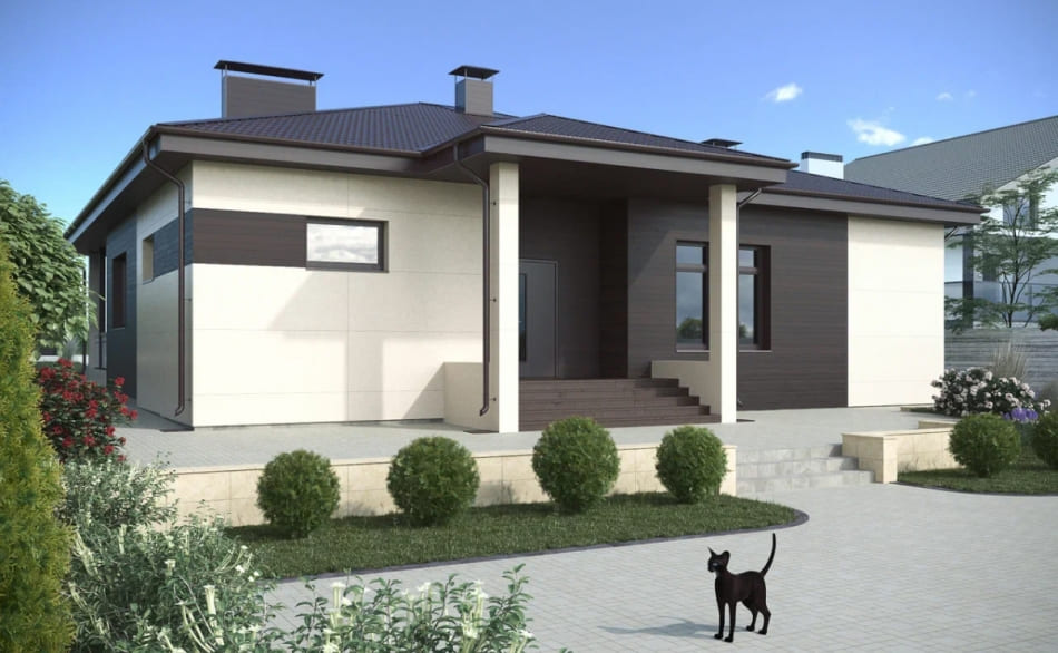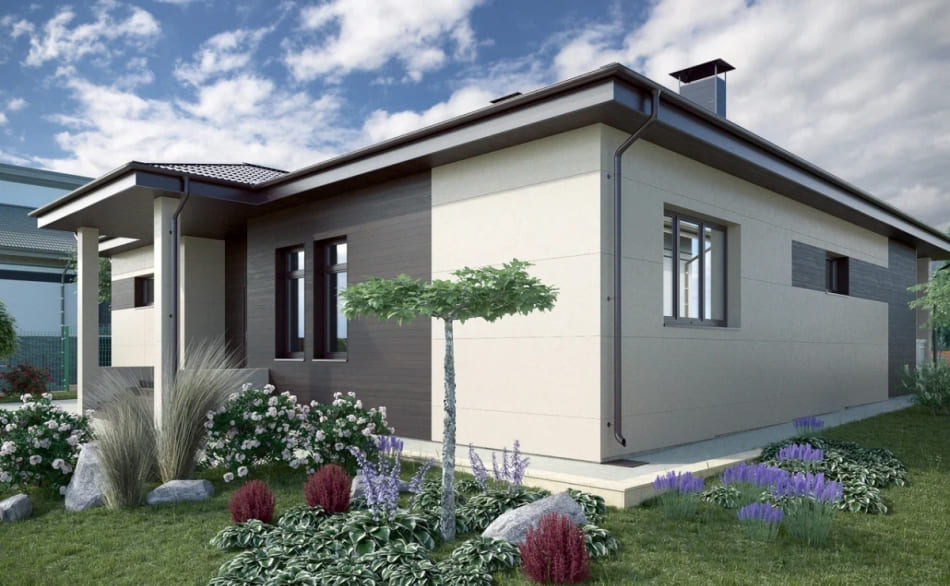 В начале работы над проектом стояла задача: на участке (около 15 соток) необходимо спроектировать одноэтажный дом, зону отдыха с хозяйственным помещением и гараж. В доме планировала проживать семейная пара. Но, возможно, к ним переедут и дочь с супругом. Поэтому дизайн интерьера и площадь вокруг дом получились очень рациональными, без лишней бесполезной площади.