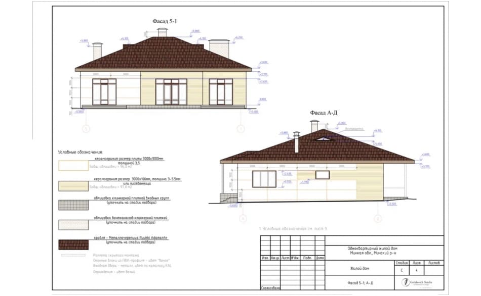 Ведомость отделочных материалов (площади материалов, типы материалов).