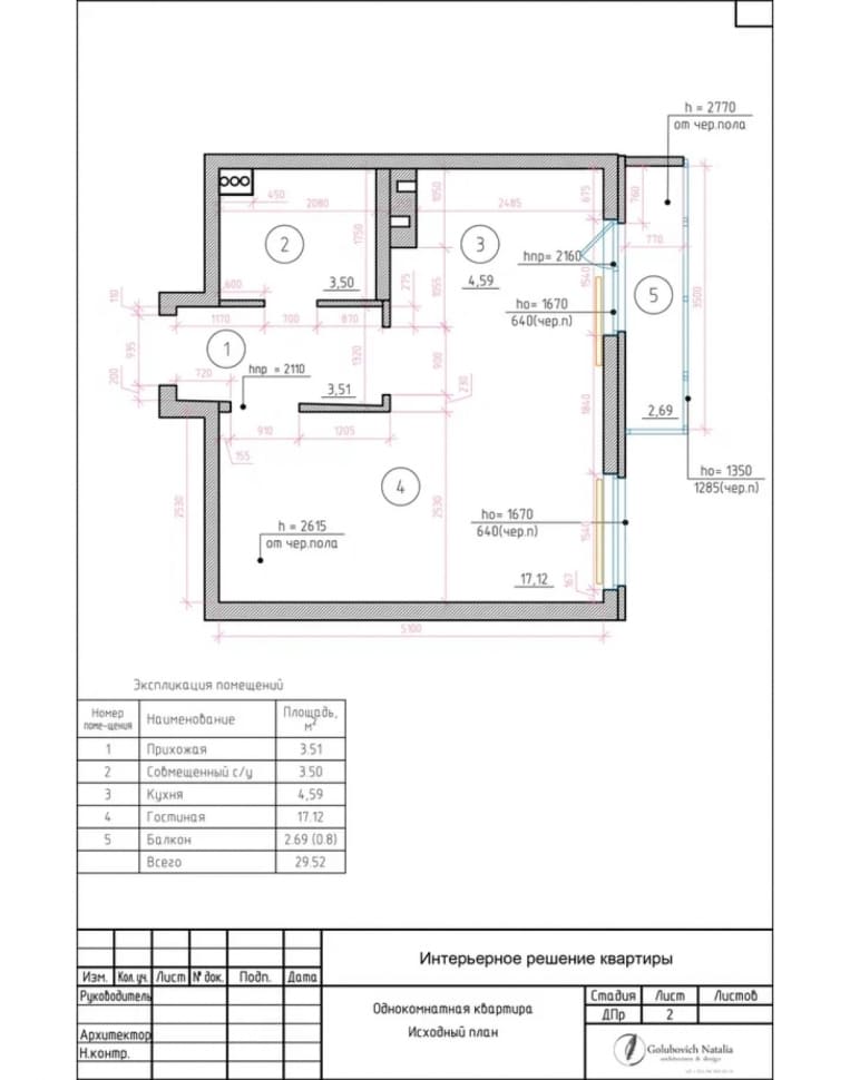 Проект однокомнатной квартиры в Санкт-Петербурге