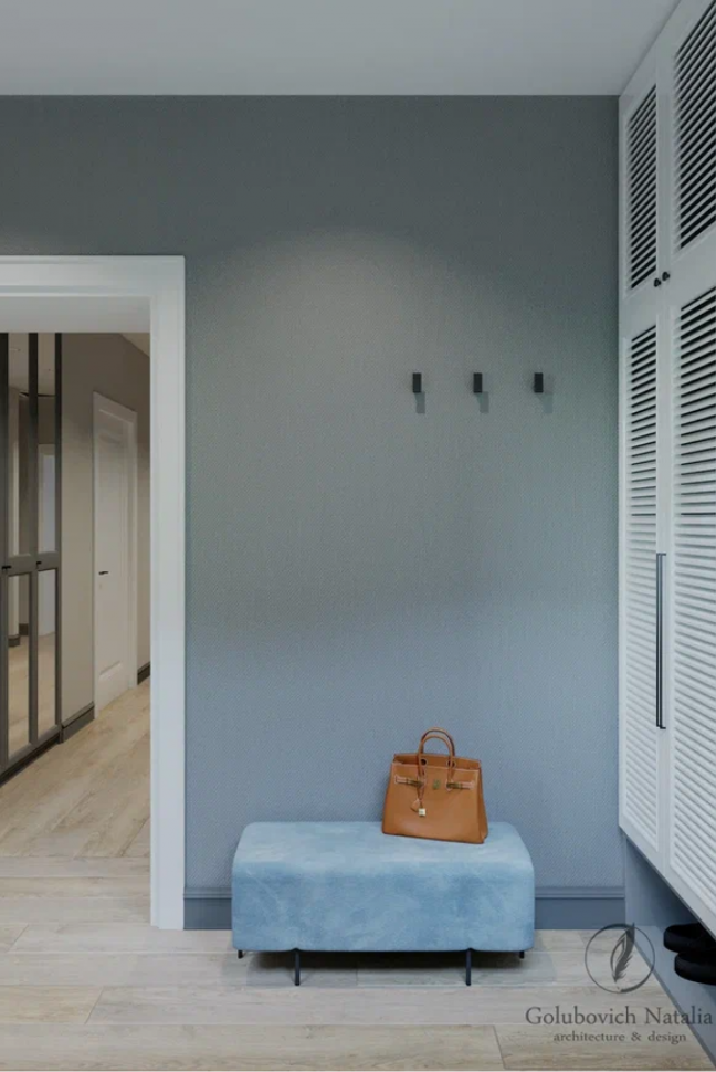В проекте соединены классические и современные мотивы, связывающие интерьер воедино с помощью уравновешенной палитры натуральных оттенков белого и серого. Светлые цвета поднимают настроение и дают ощущение чистоты.