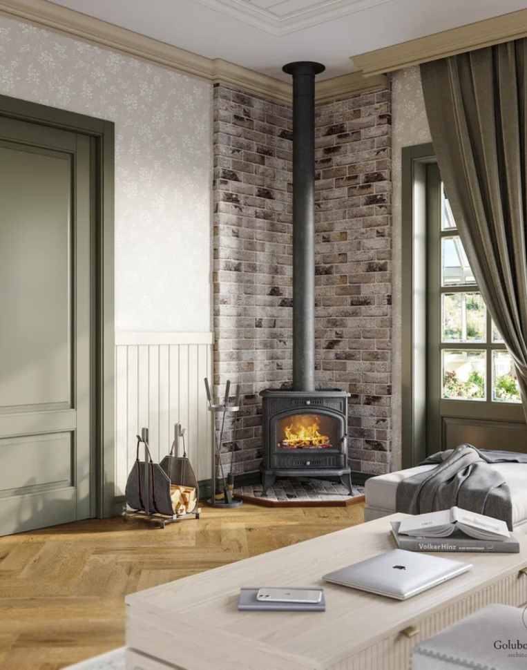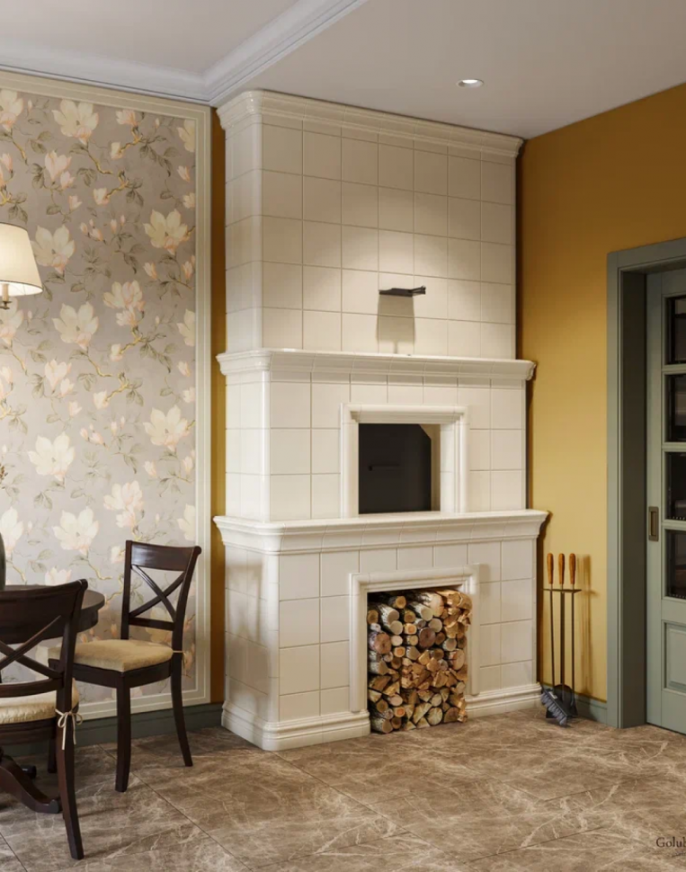 В наследство от прежних хозяев осталась печь. Ее также переделывали: полностью переложили, украсили плиткой-изразцами. Теперь в зоне кухни можно готовить настоящие блюда из печи, а в спальне – отдыхать и греться на уютной лежанке.